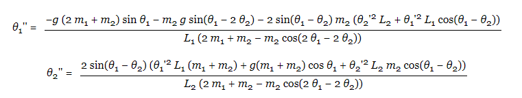 float num1 = -g*(2*m1 + m2) * sin(a1) - m2*g*sin(a1-2*a2) -2*sin(a1 - a2)*m2*(a2_v*a2_v*r2 + a1_v*a1_v*r1*cos(a1-a2));